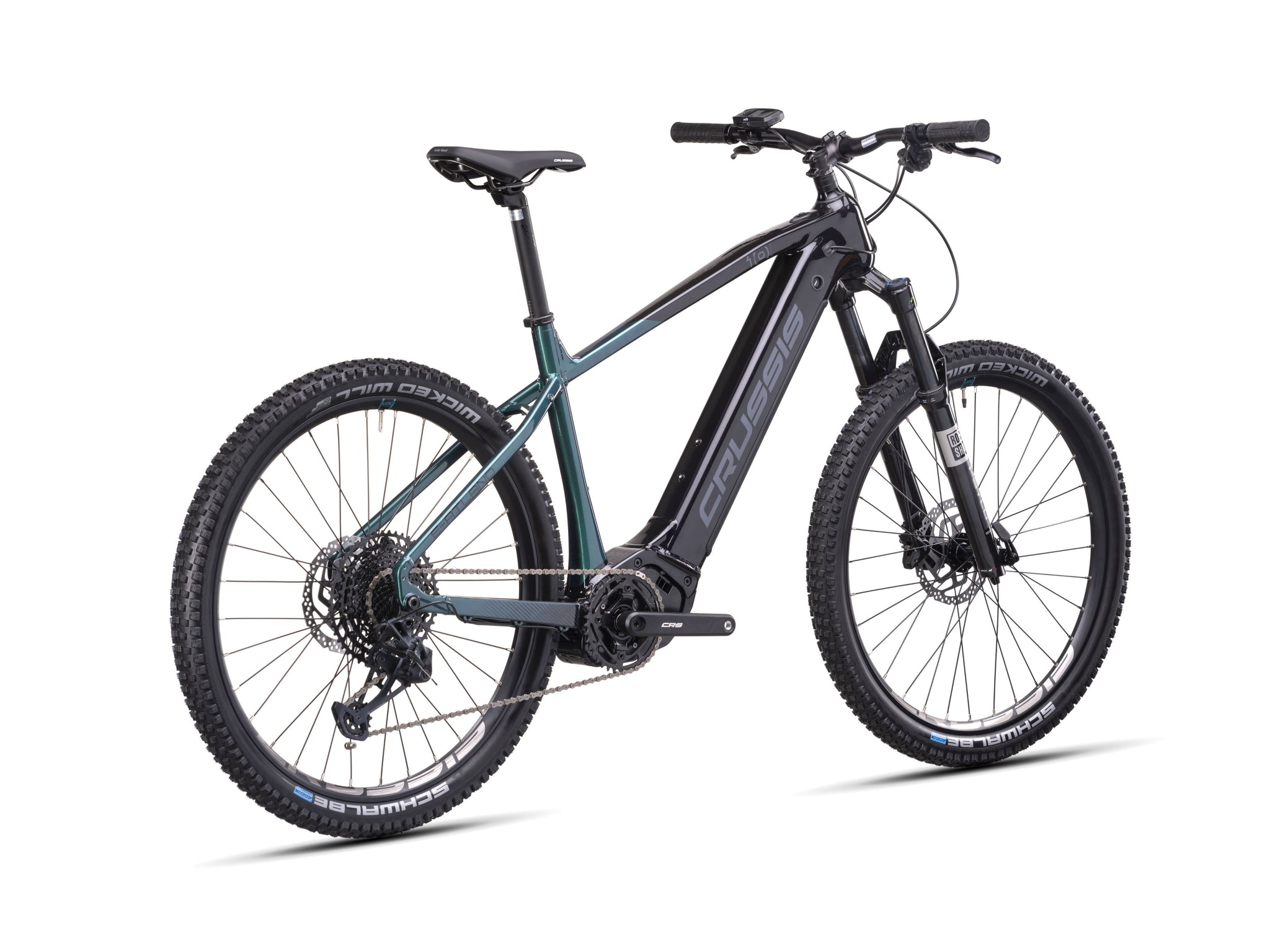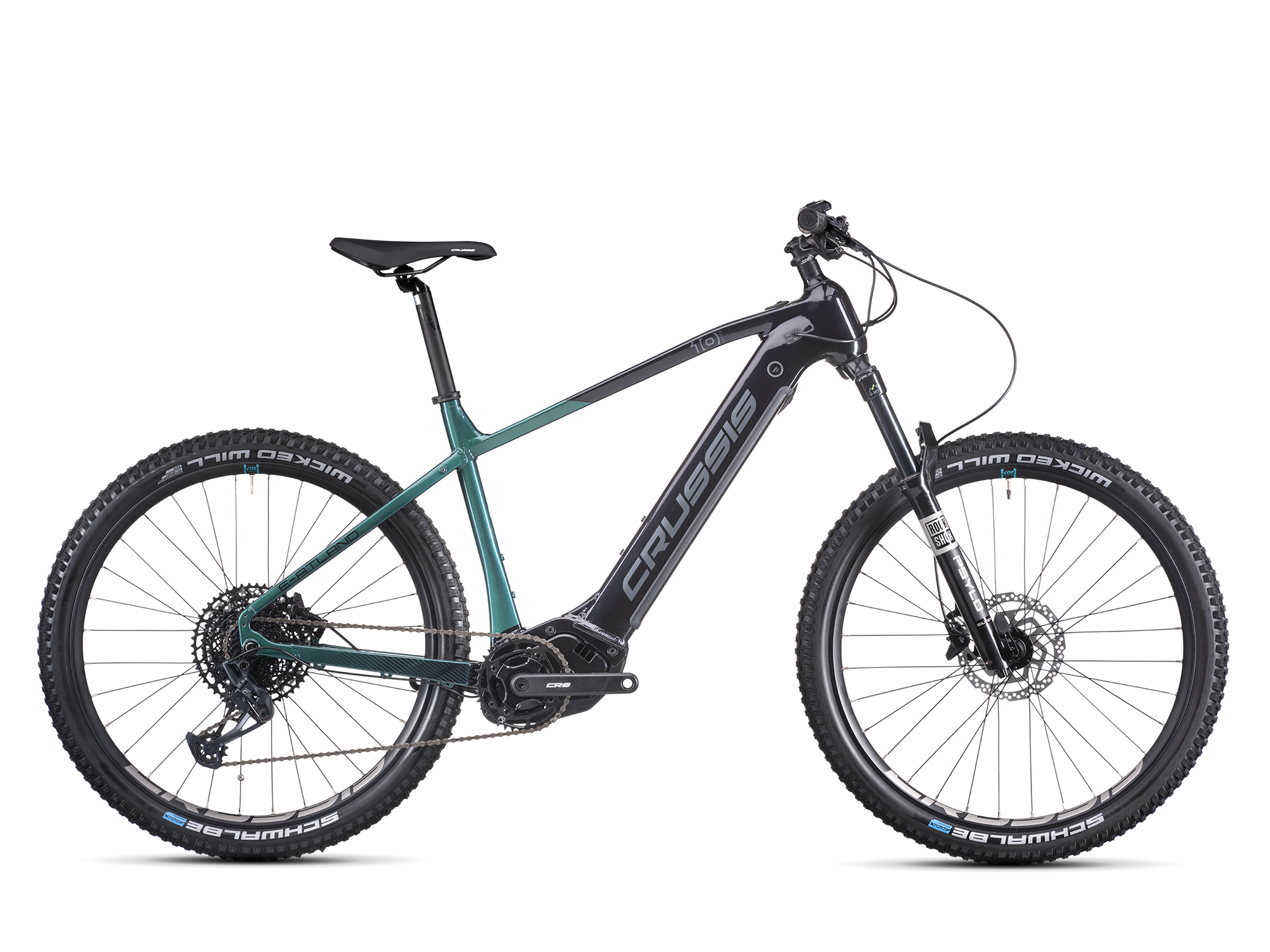 Crussis Atland 10.10 je električno gorsko kolo z aluminijastim okvirjem, udobno geometrijo in kolesi premera 27,5”. Kolo poganja pogonski motor PANASONIC GX Ultimate s kar 95Nm navora, ki je nameščen na sredini kolesa, na optimalni lokaciji z vidika ravnotežja in voznih lastnosti. Baterija 720Wh je vgrajena v okvir kolesa katero lahko tudi zelo enostavno snamemo s priloženim ključem. Domet je do 170 km (odvisno od profila steze in načina uporabe pomoči). Udobje v vožnji izboljšuje vzmetena vilica ROCKSHOX, udoben sedež, hidravlične disk zavore in pnevmatike SCHWALBE WICKED WILL EVO, TLE 27,5 x 2,40 - garancija za popolno vožnjo po cesti in brezpotjih.